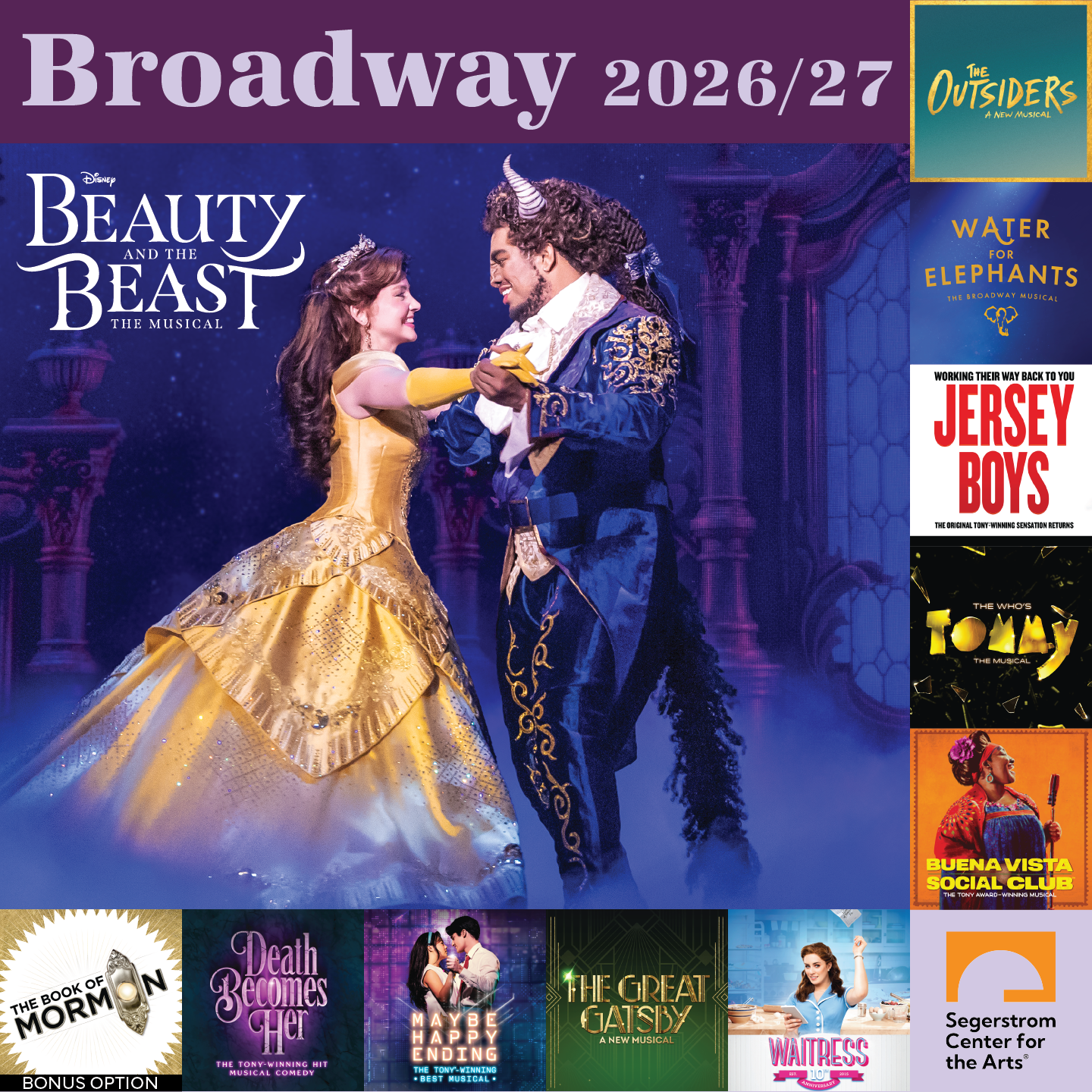Subscribe Now. It is our 40th Broadway season at Segerstrom Center for the Arts, and oh what a year we have in store! Our 2026–27 lineup features 10 acclaimed productions—including six Orange County premieres—ranging from spectacular new versions of iconic classics to Tony Award-winning favorites and bold new works fresh from New York City. Subscribe and save! 600 Town Center Drive, Costa Mesa, 714.556.2787. scfta.org