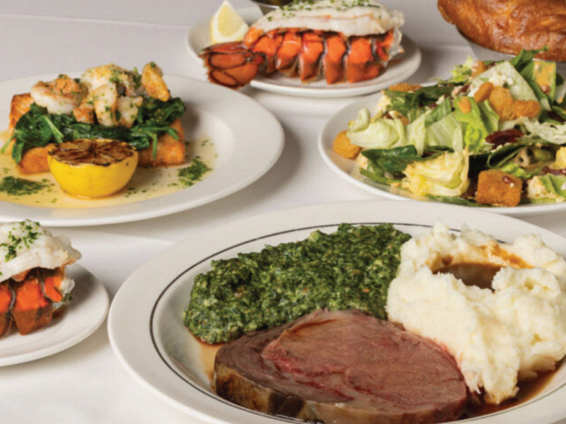 April 5. A classic holiday meal takes shape at Lawry’s The Prime Rib with a lineup of signature dishes served in its storied dining room. The menu centers on 45-day dry-aged linz heritage angus roasted prime rib, accompanied by the original spinning bowl salad, mashed idaho potatoes, yorkshire pudding, and horseradish ($63–$115), alongside options like honey-roasted ham with sweet potatoes and sautéed green beans ($47) or the “best of both” pairing ham and prime rib ($57). A festive pom fizz with prosecco, pomegranate juice, and fresh seeds rounds out the experience.