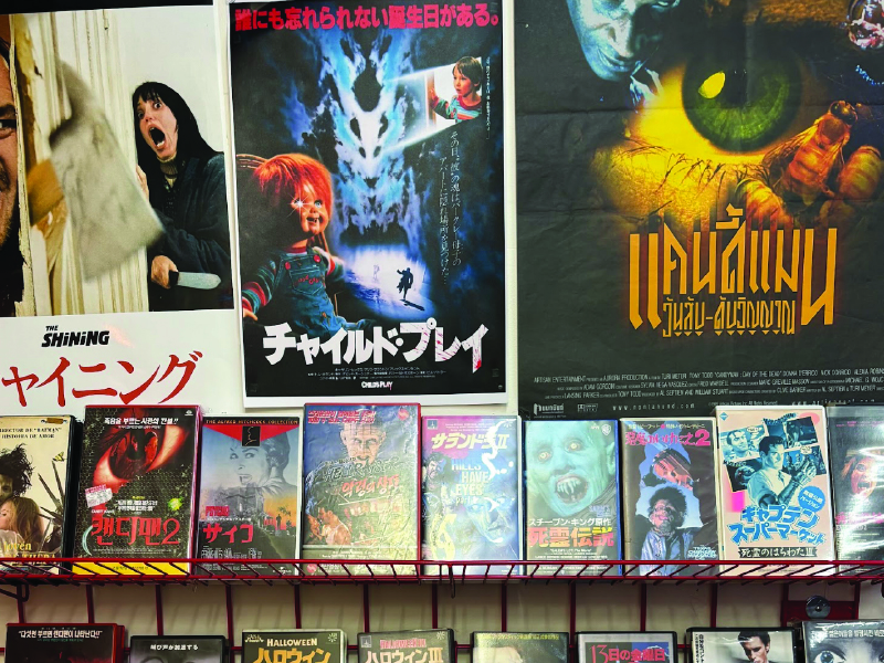 Inside, every inch of Slashback feels intentional—stacked with original VHS tapes, international editions, and rare poster art from Japan, Korea, and Thailand. “I’m part Japanese, so I really wanted to show that horror is universal,” Kiko said. “I love displaying Asian horror, Black horror, queer horror—everyone should feel represented. You might see Texas Chainsaw Massacre in Japanese or Candyman in Korean, and it’s so cool because people have never seen them like that before.”